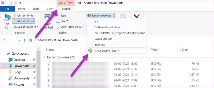 قابلیت جستجوی فایل اکسپلورر کاربرد زیادی دارد و تمام جستجوهای گذشتهتان را ذخیره میکند تا در آینده راحتتر بتوانید به سراغ آنها بروید. اما اگر میزان جستجوهایتان افزایش پیدا کند، این احتمال وجود دارد که پس از مدتی فایل اکسپلورر کند شود و کارایی لازم را نداشته باشد. بنابراین بهتر است تاریخچه فایل اکسپلورر را پاک کنید.
