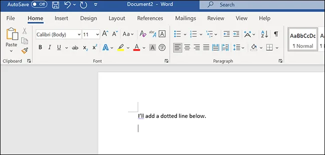 برای انجام این کار ابتدا یک سند جدید باز کنید و سپس موس خود را جایی که میخواهید خط چین را اضافه کرده برده و در همان جا کلیک کنید. اگر در حال تایپ هستید و میخواهید در خط بعدی خط چین را اضافه کنید، کافی است اینتر بزنید.
