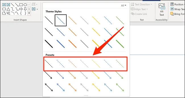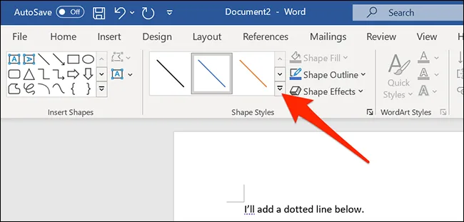 اضافه کردن خط چین از طریق بخش Shapes