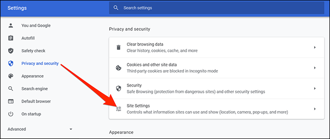 حالا به Privacy and security رفته و از آنجا Site Settings را انتخاب کنید.