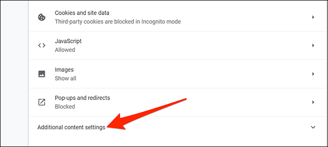 به پایین صفحه بروید و روی Additional content settings کلیک کنید.
